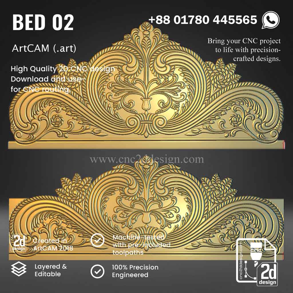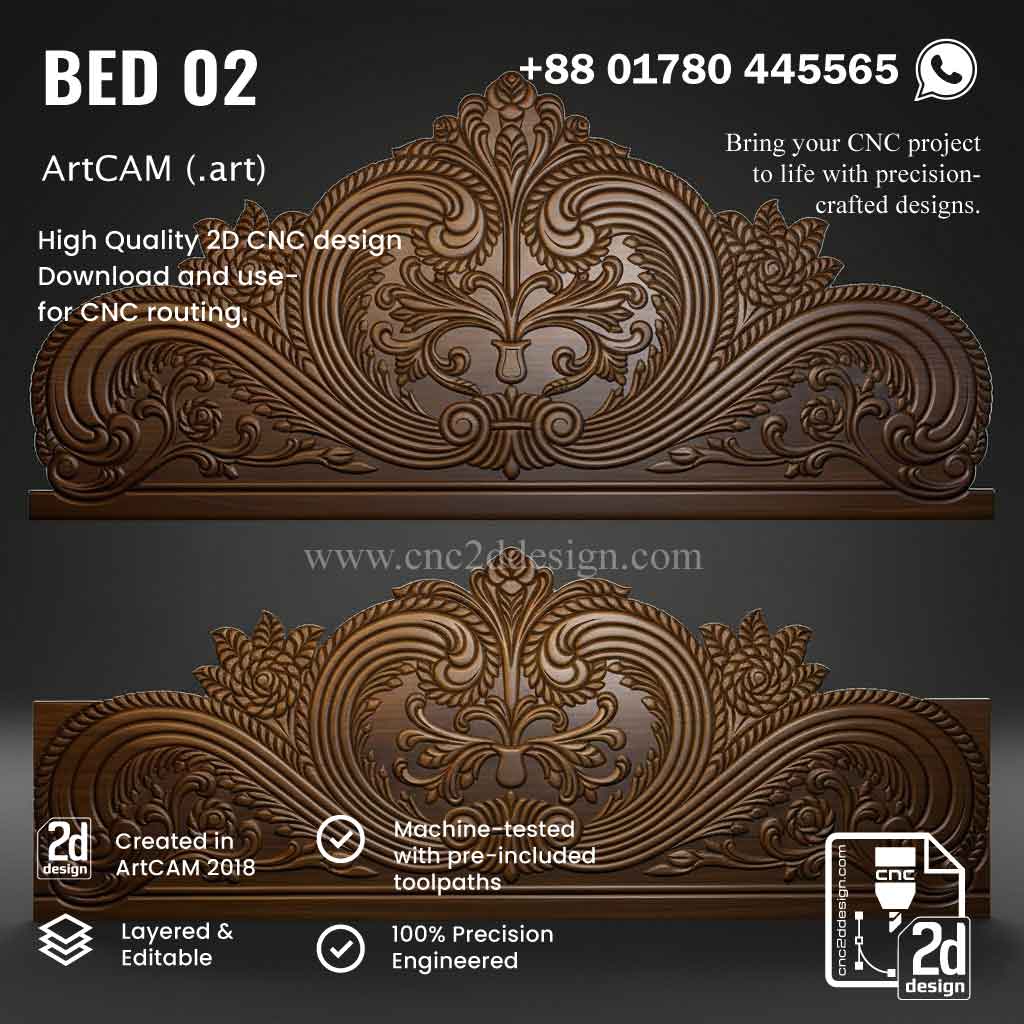 CNC 2D Bed Design 02– Wood Carving Digital File