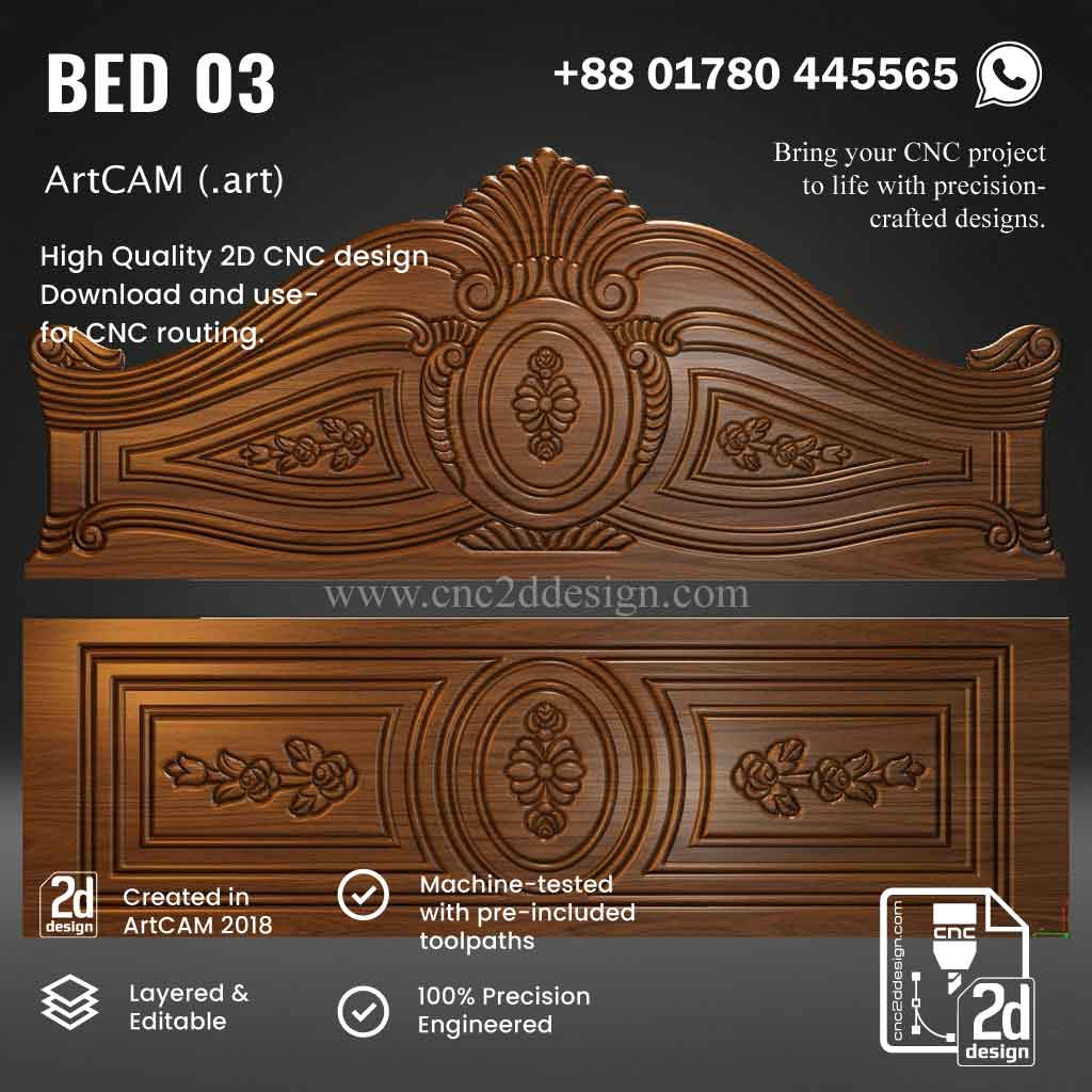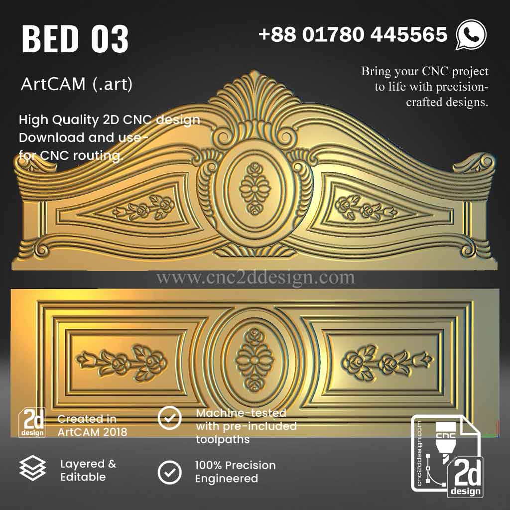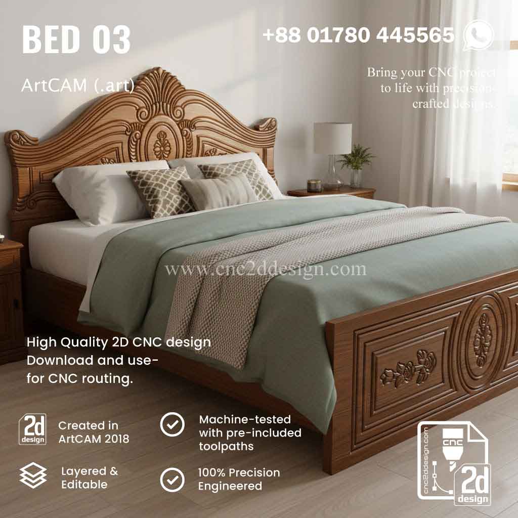 CNC 2D Bed Design 03– Wood Carving Digital File