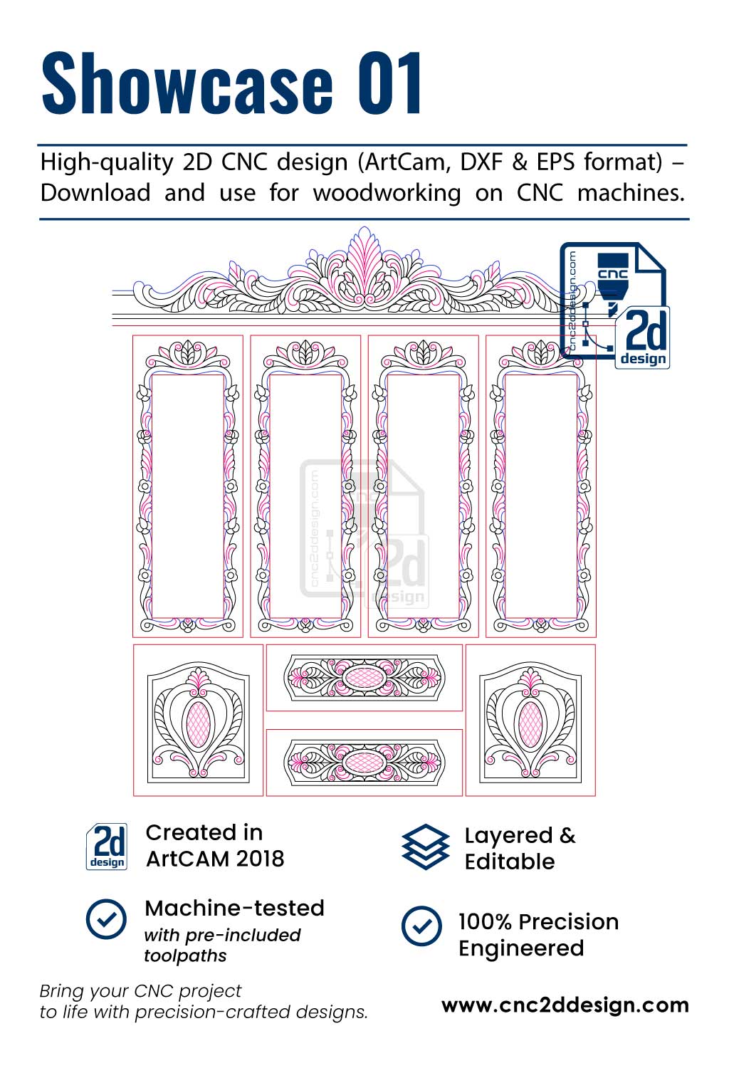 CNC 2D Showcase Design 01 – Wood Carving Digital File (.art), (.dxf) & (.eps)