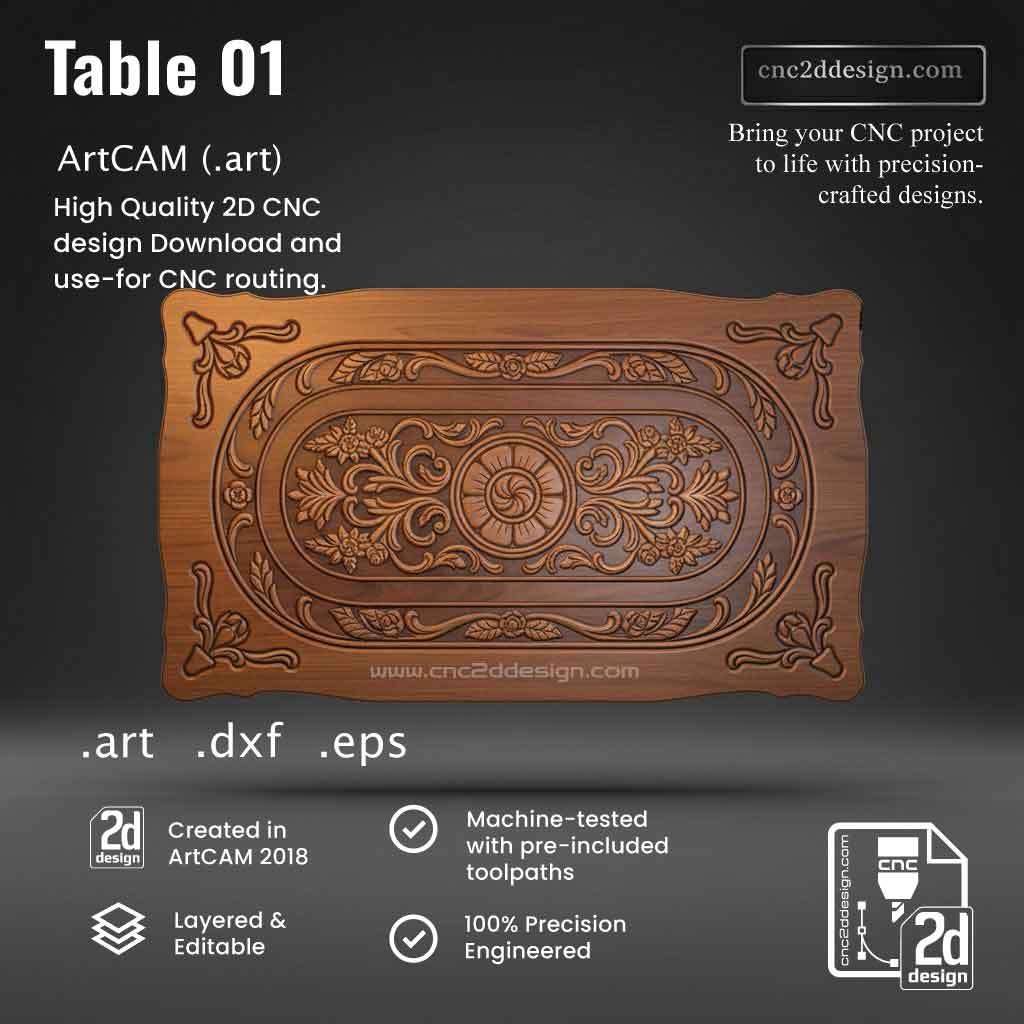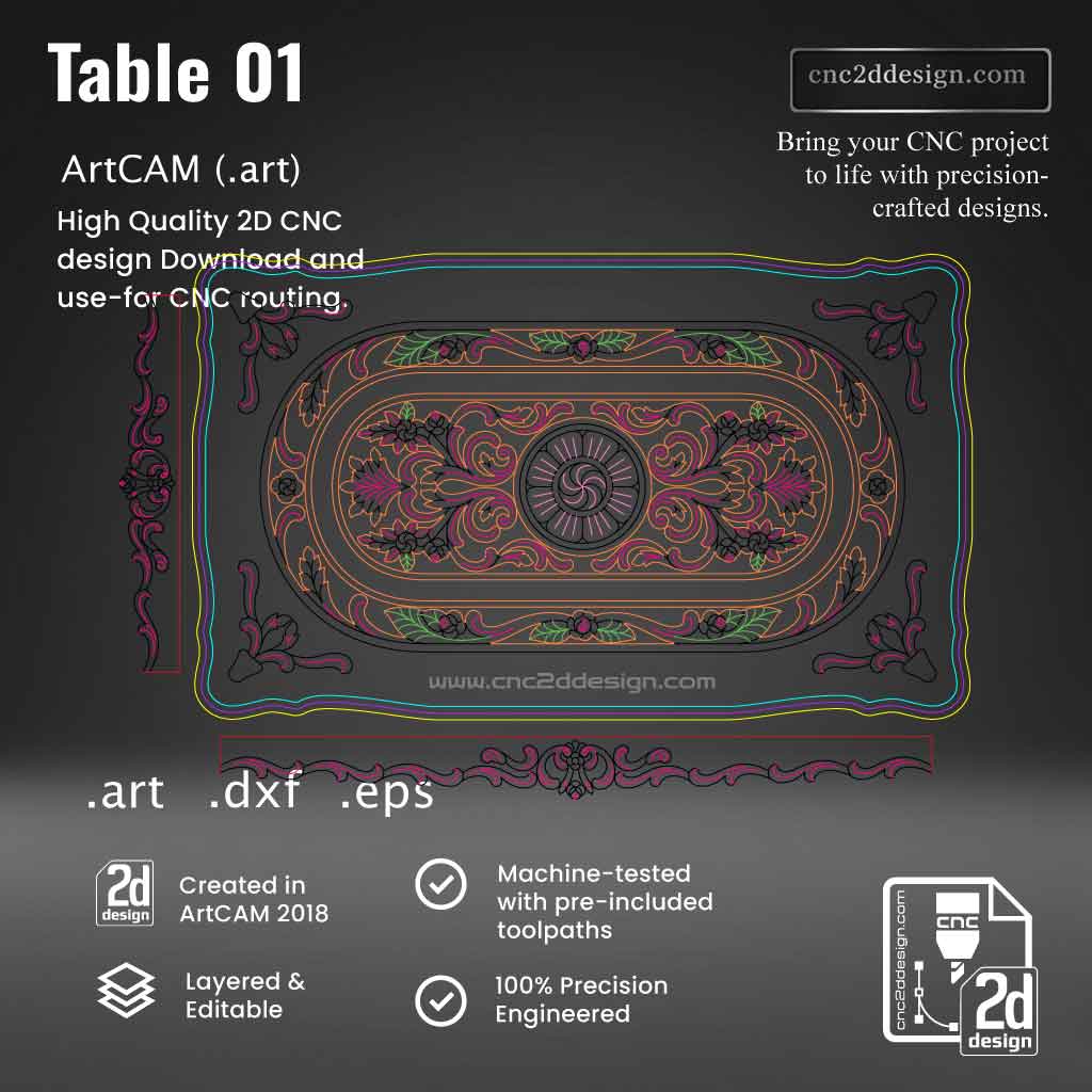 CNC 2D Table Design 01 – Wood Carving Digital File (.art), (.dxf) & (.eps)