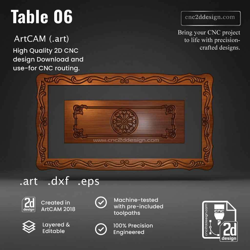 CNC 2D Table Design 06 – Wood Carving Digital File (.art), (.dxf) & (.eps)